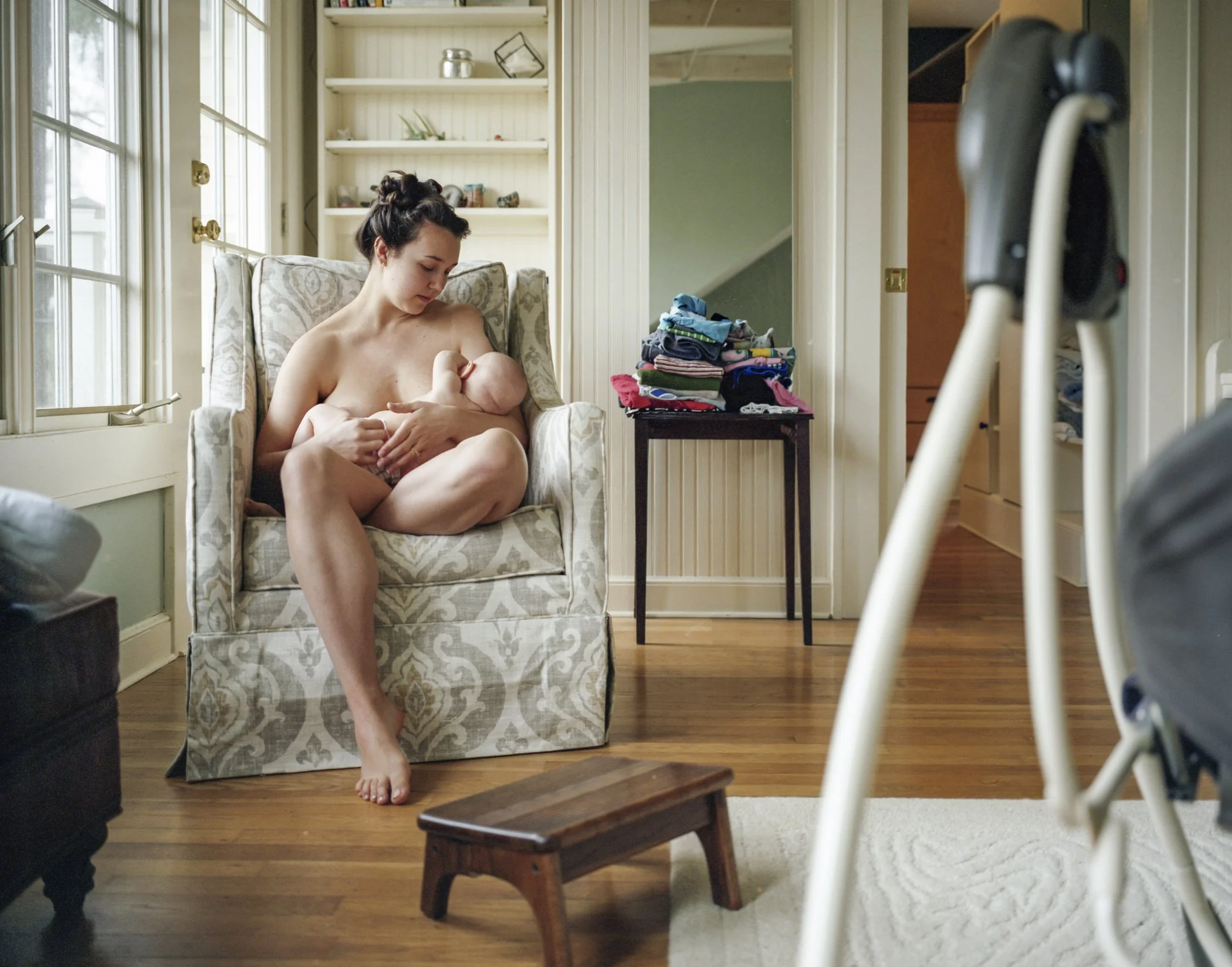 A: The first 2–6 weeks, ideally. But I am not looking for a sleeping, curled-up newborn on a beanbag. I photograph your baby as part of your family—being held, being fed, being loved—in the context of your actual home. If your baby is 8 weeks, 3 months, or 6 months old, it is not too late. Every stage is worth documenting.