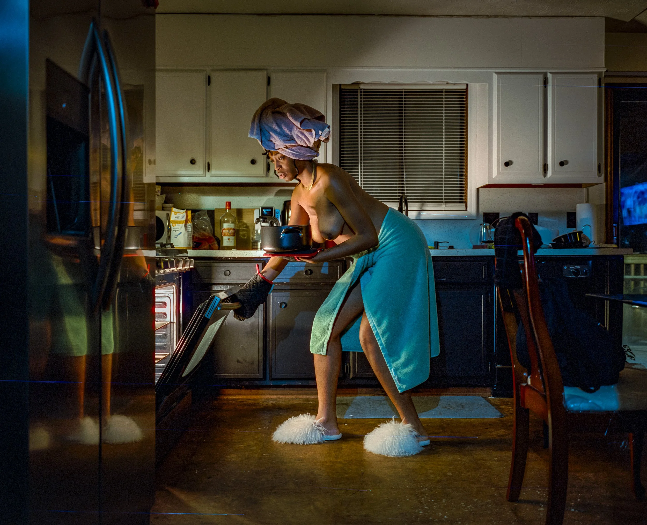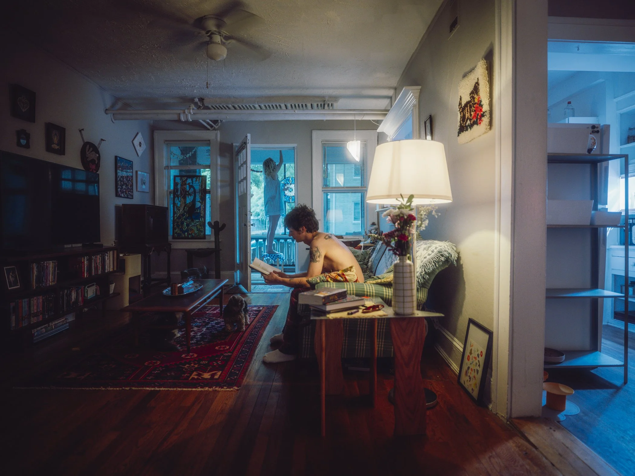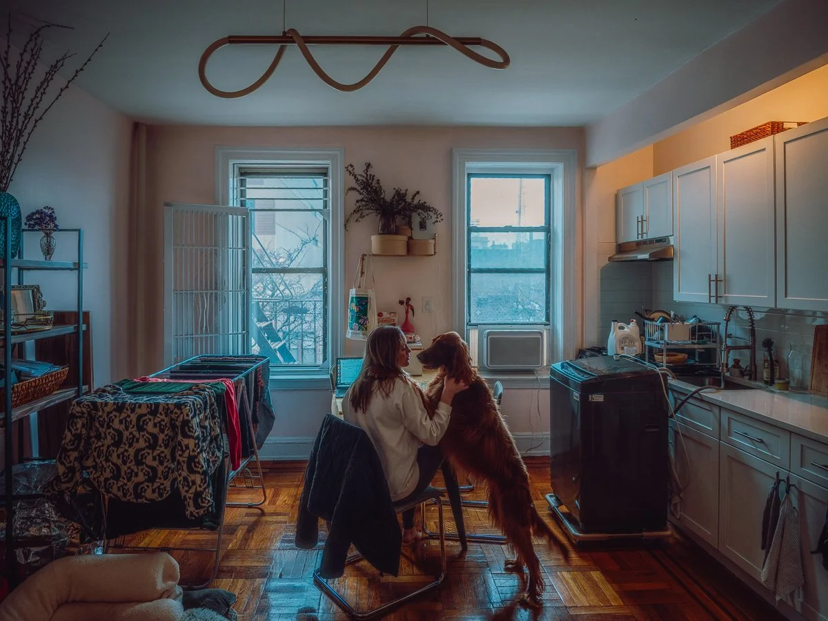 A: It is an environmental portrait of you in your home. I photograph your space—the rooms you live in, the objects you have surrounded yourself with, the light as it actually is—and I photograph you inside it, doing the things you actually do. The result is a portrait that shows not just how you look, but who you are and how you live.